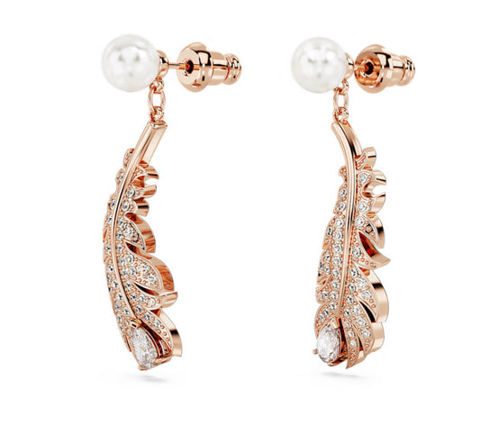 Swarovski 5663486 Orecchini pendenti Nice Piuma Bianchi Placcato Oro Rosa