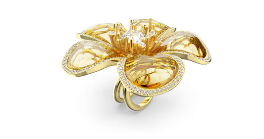 Swarovski 5663074 Anello cocktail Florere Fiore Giallo Placcato color Oro