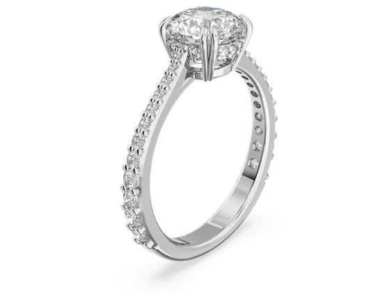 Swarovski 5656289 Anello Attract Trilogy Taglio tondo Bianco Placcato Argento
