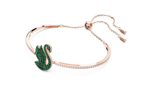 Swarovski 5650065 Bracciale rigido Iconic Swan Cigno Verde Placcato Oro Rosa