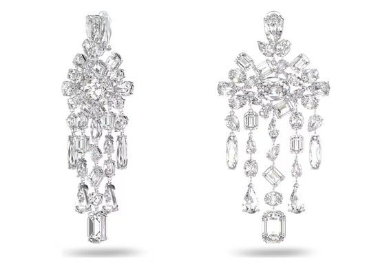 Swarovski 5639329 Orecchini a clip Gema Taglio misto Chandelier Bianchi P. Rodio