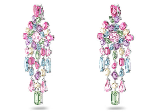 Swarovski 5601887 Orecchini aclip Gema Taglio misto Chandelier Multicolore Rodio