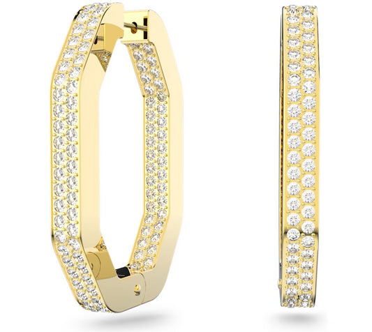 Swarovski 5618304 Orecchini cerchio Dextera Forma ottagonale Grandi Bianchi Oro