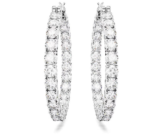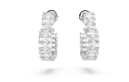 Swarovski 5647715 Orecchini a cerchio Matrix Taglio tondo Bianchi Placcato Rodio