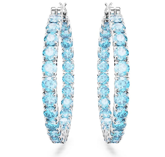 Swarovski 5647446 Orecchini a cerchio Matrix Taglio tondo Blu Placcato Rodio