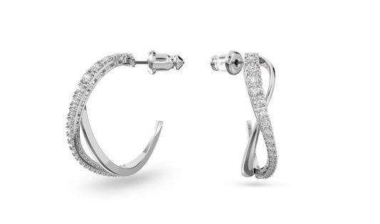 Swarovski 5563908 Orecchini a cerchio Twist Bianchi Placcato Rodio