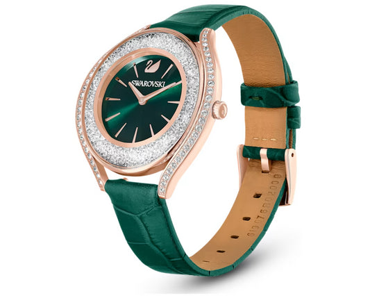 Swarovski 5644078 Orologio Crystalline Aura Cinturino pelle Verde Fin. Oro Rosa