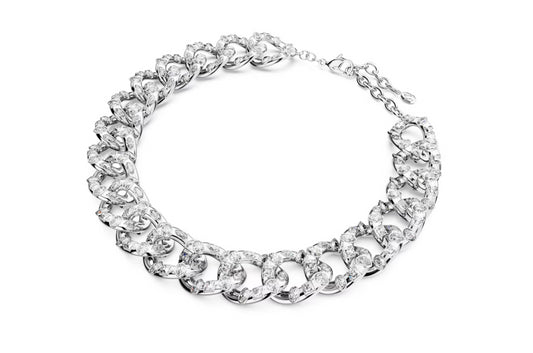 Swarovski 5675546 Dextera Statement-Halskette, gemischter Schnitt, groß, weiß, rhodiniert