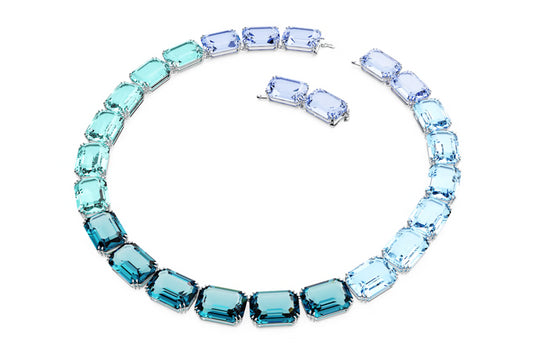 Swarovski 5630369 Millenia Halskette, achteckiger Schliff, blau, rhodiniert