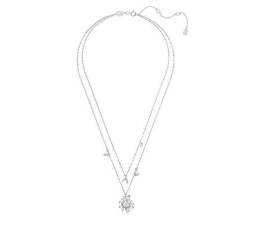 Swarovski 5644658 Gema Layered Halskette, weiße Blume, rhodiniert