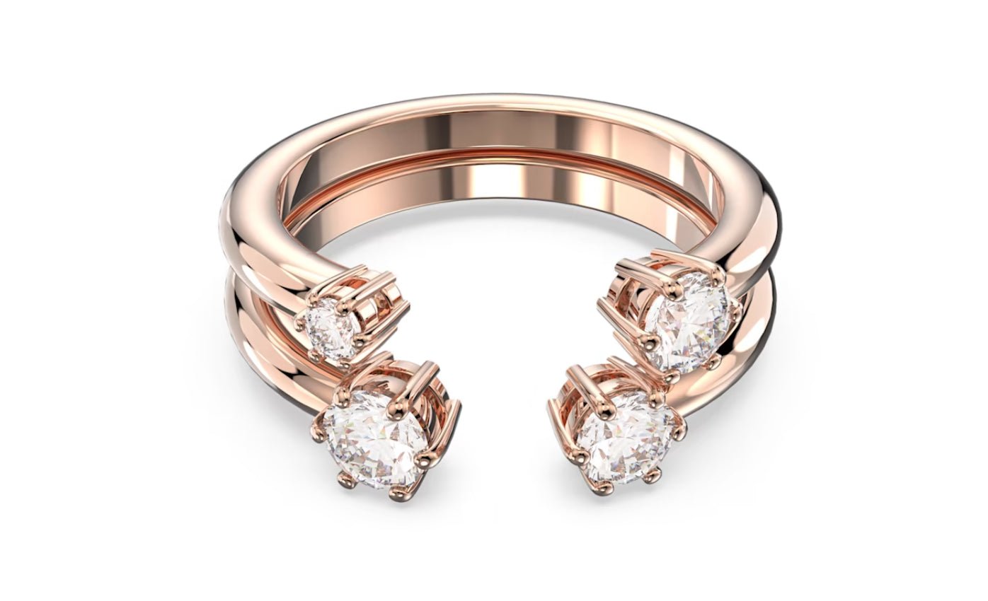 Swarovski 5640973 Constella Ring Set 2 Round Cut White Rose Gold Plated Size58