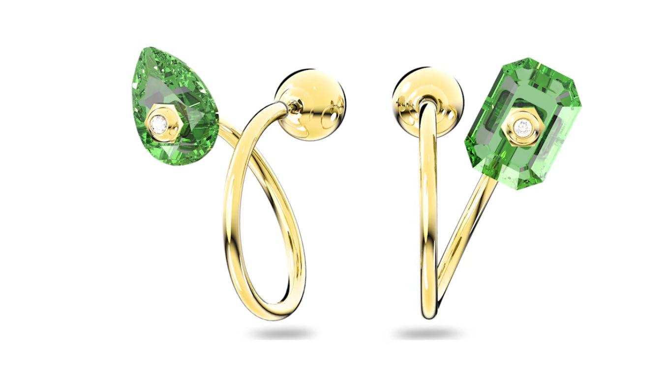 Swarovski 5613541 Orecchini pendenti Numina Design asimmetrico Taglio misto Verdi Placcato Oro