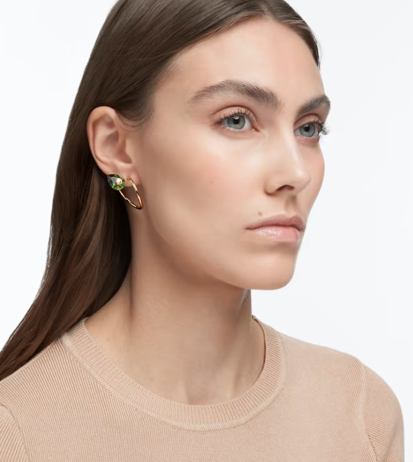 Audaci ma raffinati, questi sfavillanti orecchini celebrano il retaggio industriale di Swarovski. Questo paio di orecchini presenta cristalli a contrasto taglio Pear e Octagon in una vivace tonalita di verde, ciascuno contenente pietre piu piccole rotonde. Rifiniti con una incastonatura placcata oro, questi orecchini sono perfetti con qualsiasi outfit, dal tailleur chic a un elegante abito da sera. Parte della famiglia Numina, questi orecchini sono ideati dalla Direttrice Creativa Giovanna Engelbert per la Collection II.