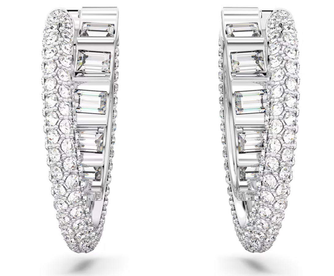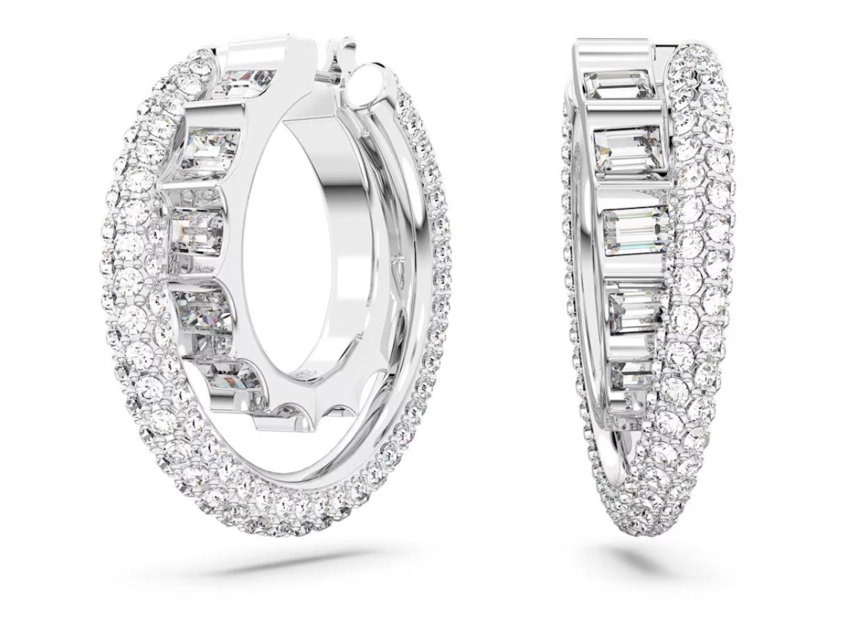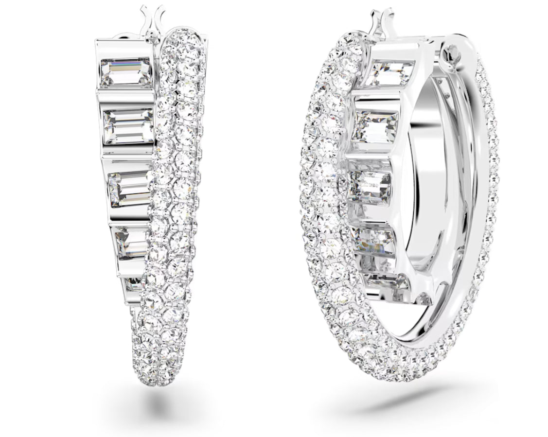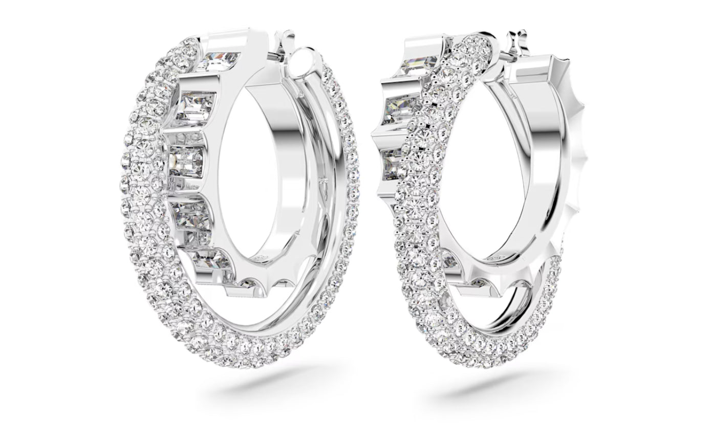 Swarovski 5623483 Orecchini a cerchio Rota Taglio misto Bianchi Placcato Rodio