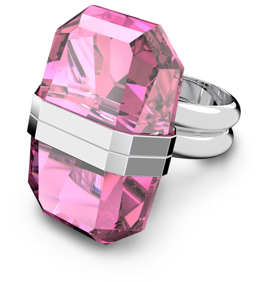Osa l'audacia di un anello a motivo di grande effetto. Sfoggiando un vivace cristallo rosa al centro, questo raffinato design placcato rodio e munito di un'innovativa chiusura magnetica per un tocco esclusivo in piu. Indossalo da solo con grande stile, oppure crea un mix and match con altri elementi della linea Lucent, quando vuoi un glamour ancora piu accentuato. Parte della linea Lucent, questo anello e ideato per la Collection III.
