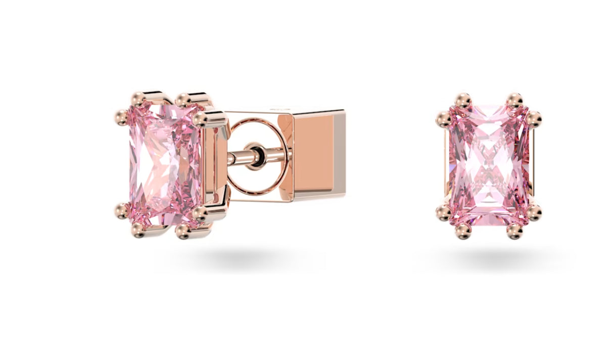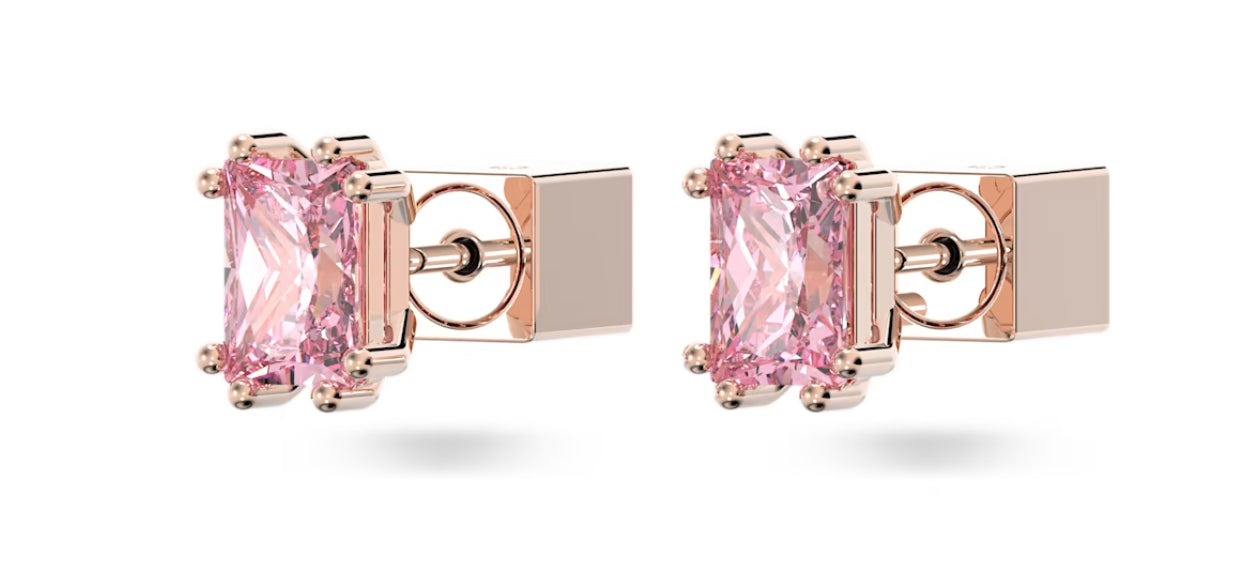 Swarovski 5639136 Orecchini a lobo Stilla Taglio rettangolare Rosa P. Oro Rosa