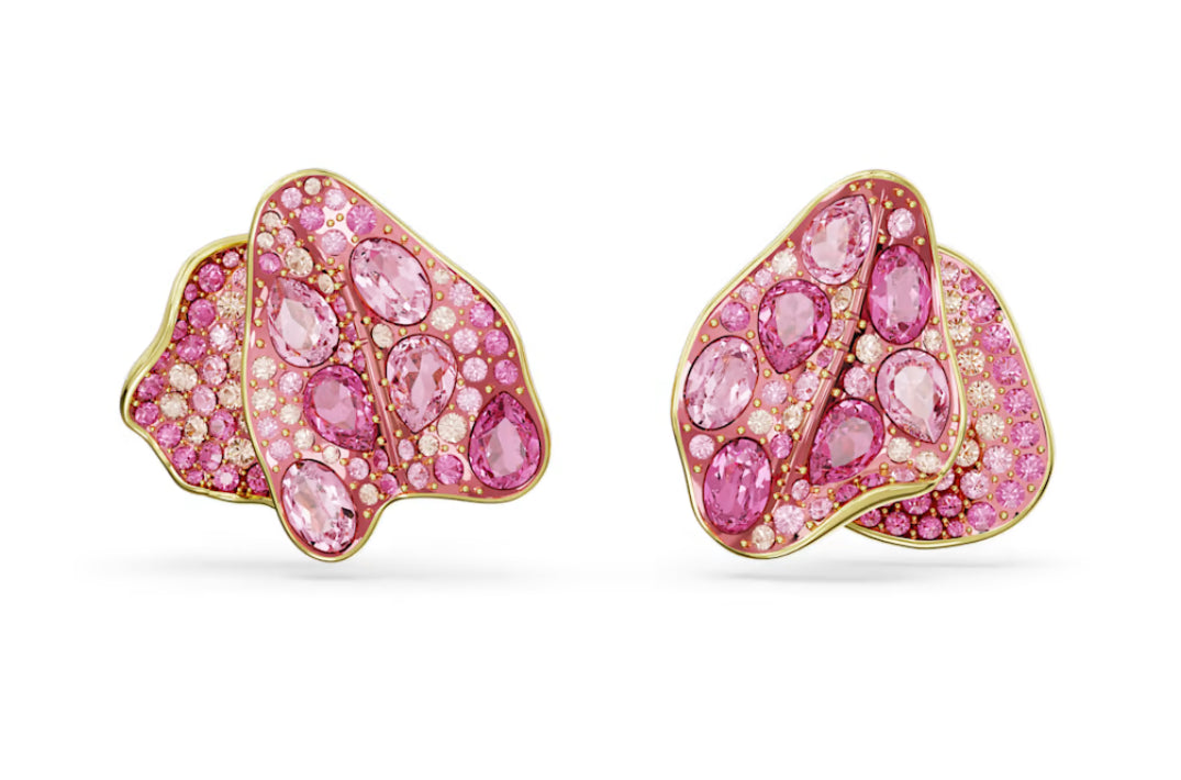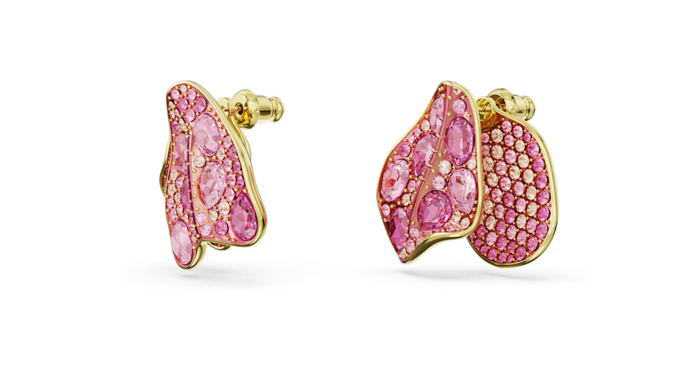 Cattura l'attenzione di tutti con questi vivaci orecchini a lobo asimmetrici. Realizzato con un delicato motivo a petalo, ogni gioiello placcato oro presenta una gamma di cristalli rosa e celebra il distintivo savoir-faire di Swarovski. Indossali per un tocco di lusso o regalali a una persona cara.