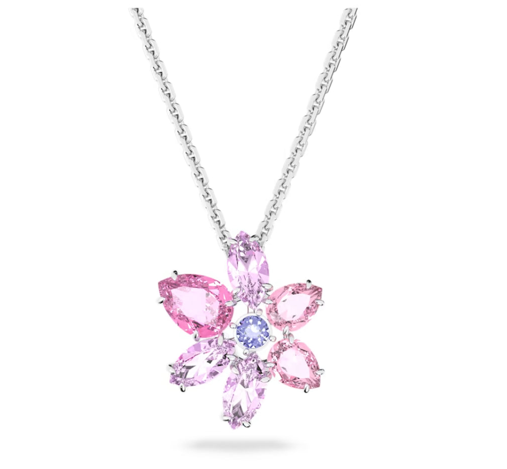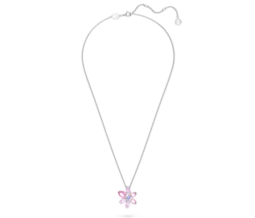 Swarovski 5662493 Pendente Gema Taglio misto Fiore Rosa Placcato Rodio